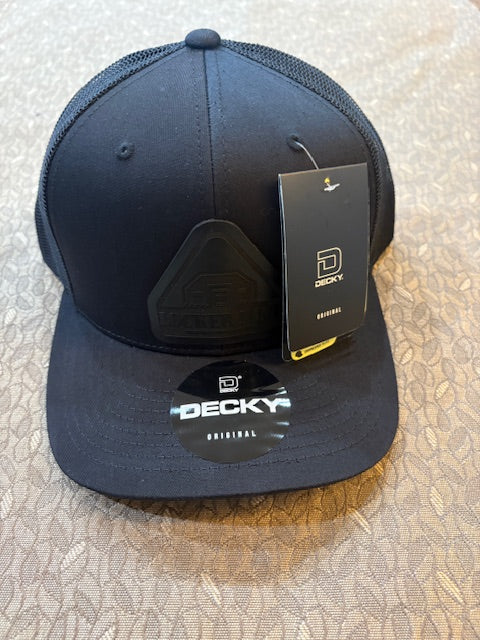 Vented Decky Snapback in black with solid black Locker Nine patch.